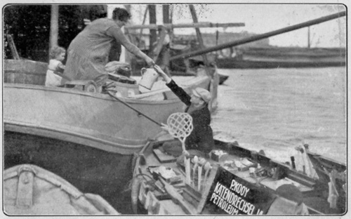 De parlevinker bevoorrade met zijn boot als een soort minisupermarkt de in de haven liggende schepen.